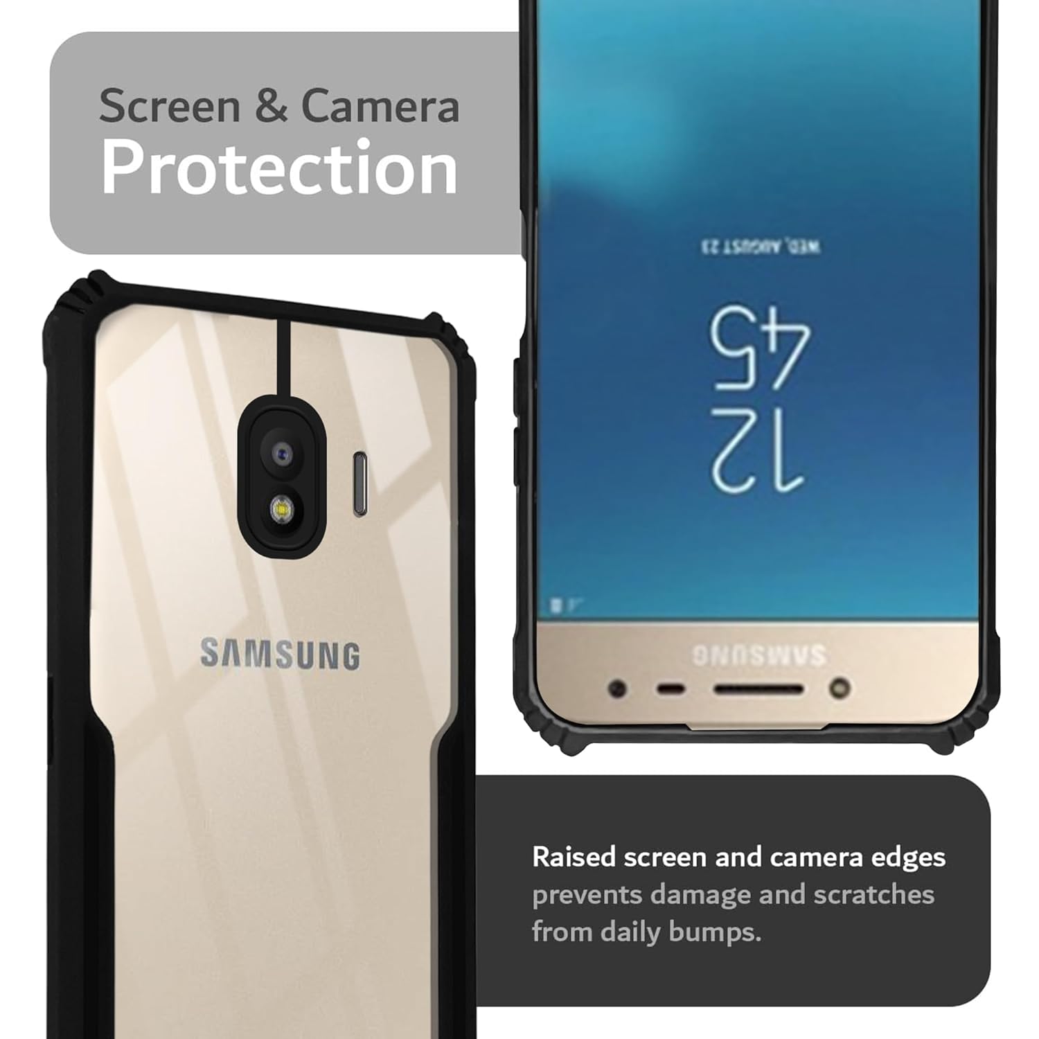 VAKIBO Best Selling Black and Transparent Coloured Made With Soft TPU and Acrylic Back Cover Case With 4 Corner and Camera Protection Suitable for Samsung Galaxy J2 2018