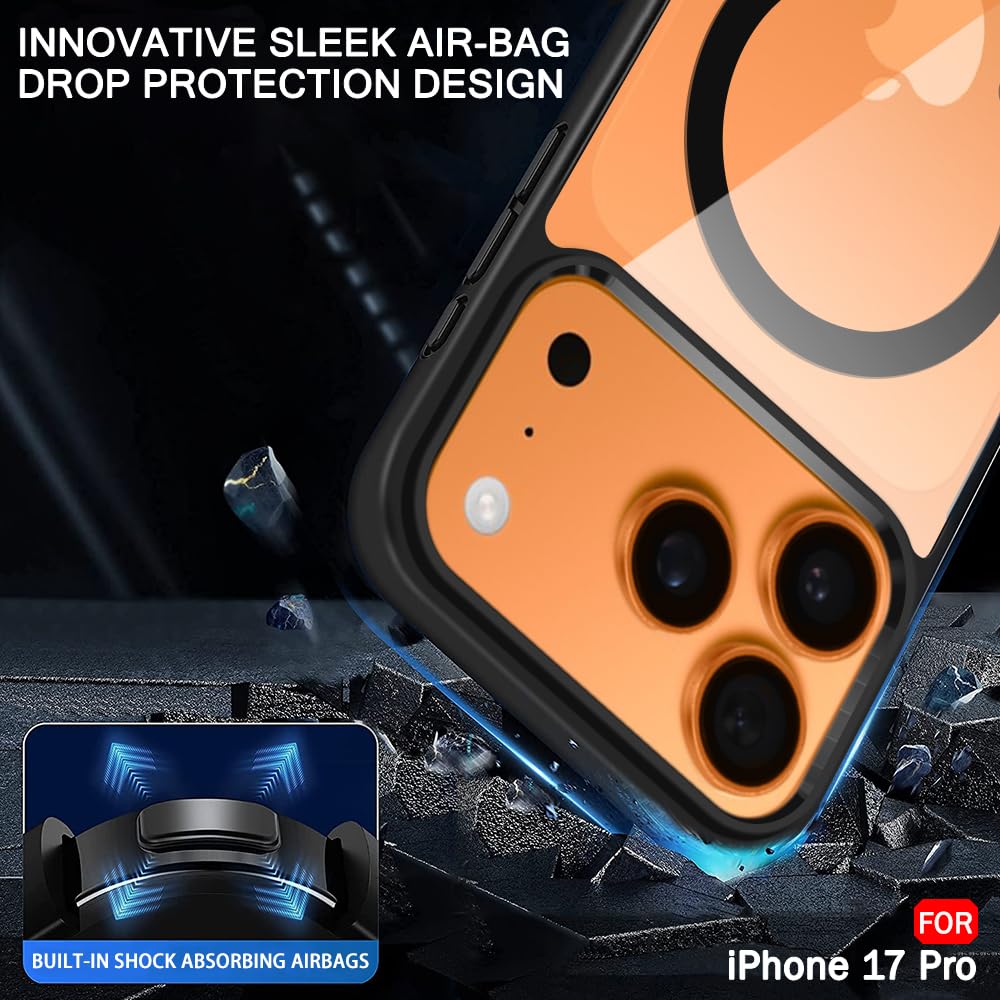 VAKIBO Megnatic Magsafe Black Coloured Soft with Hard back Back Cover Case With Camera Protection Ring Suitable for iPhone 17 Pro