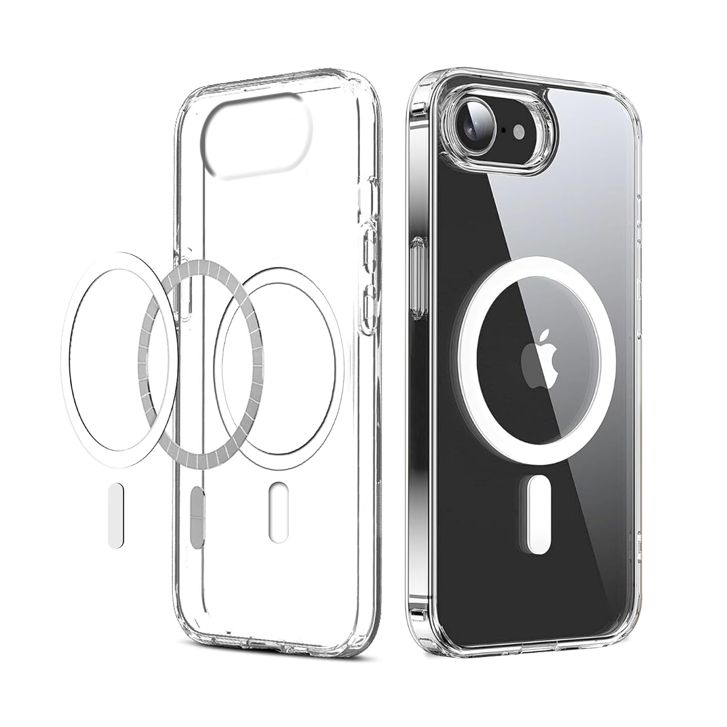 VAKIBO Megnatic Magsafe White Coloured Soft with Hard back Back Cover Case With Camera Protection Ring Suitable for iPhone 16E