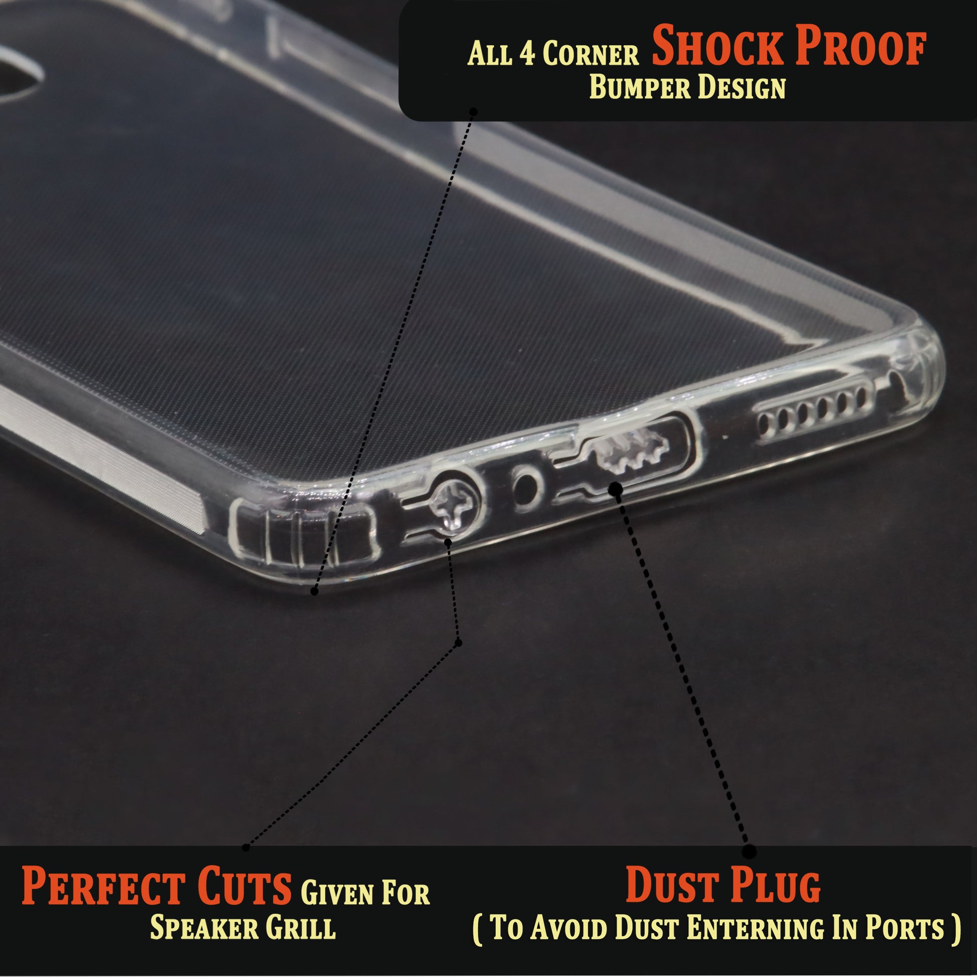 VAKIBO Super Premium Soft TPU Transparent Case With Dustplug,Side Grip,Corner Protection,lanyard Cuts,Camera Protection Suitable for Oppo F7