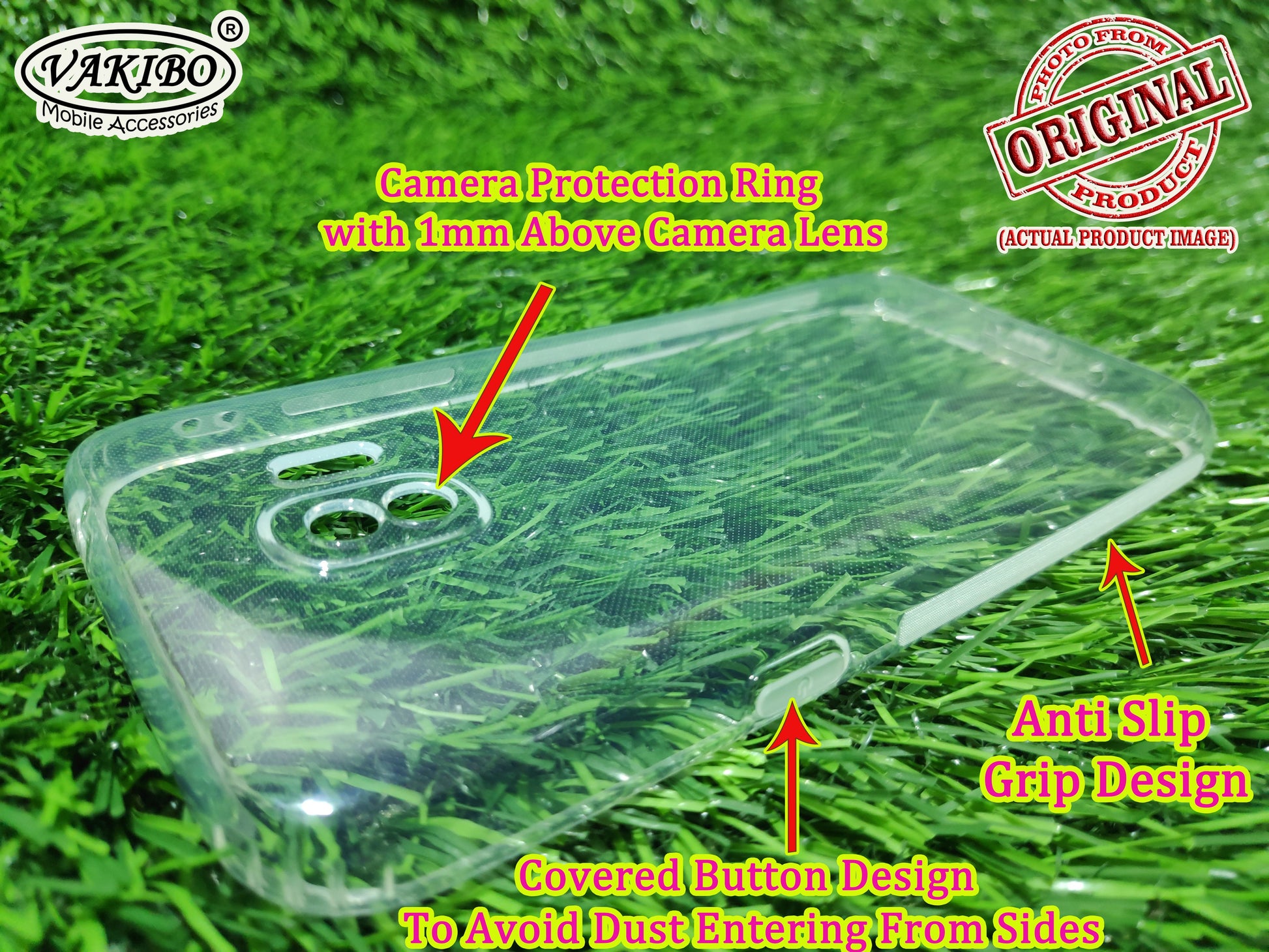 VAKIBO Super Premium Soft TPU Transparent Case With Dustplug,Side Grip,Corner Protection,lanyard Cuts,Camera Protection Suitable for Samsung J2 2018